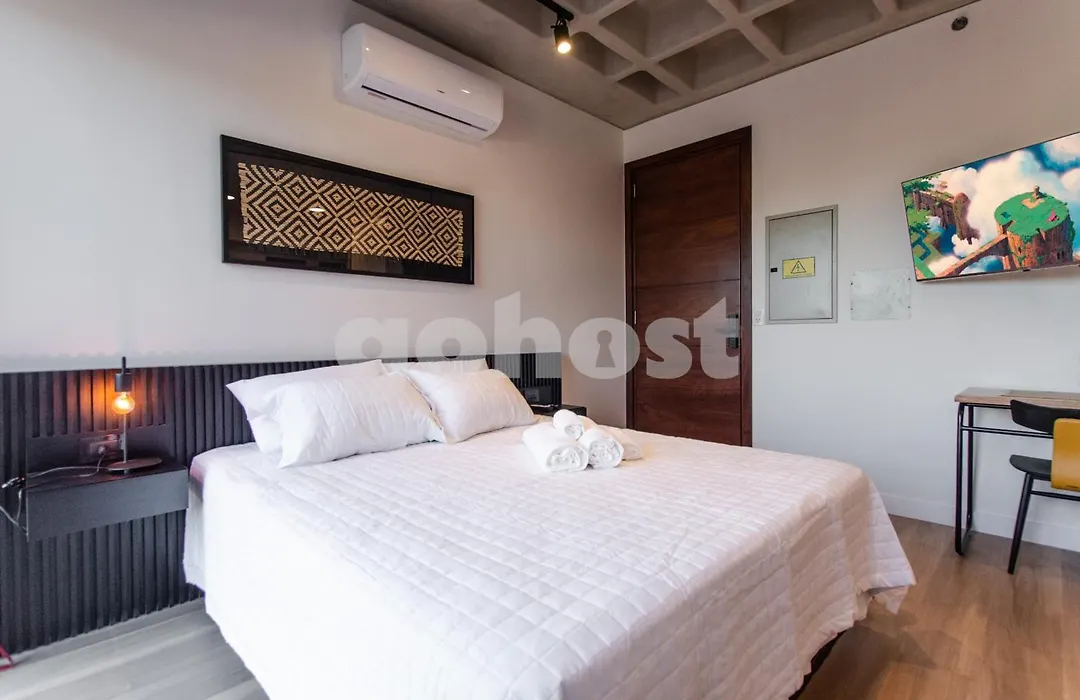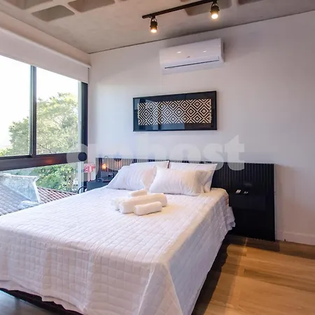 Classy Loft Near Shopping Mariscal Lopez biedt gasten toegang tot een patio en een balkon die zijn ingericht een bureau, en voorzieningen zoals airconditioning, die zorgen voor een aangenaam en ontspannen verblijf. Om uw comfort te garanderen is er een bubbelbad in dit appartement. Een haardroger, badjassen en handdoeken zijn ook aanwezig in de badkamer.